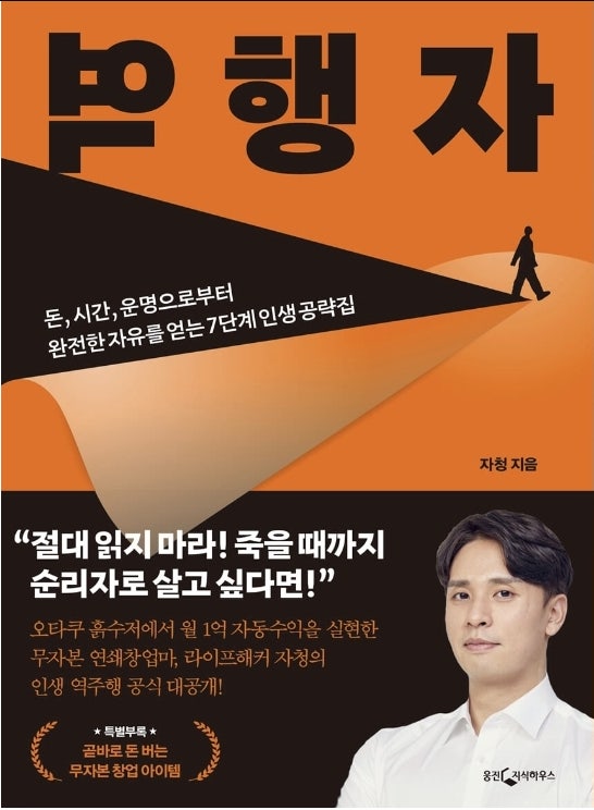나는 역행자라는 책을 돌고 돌아 2번째로 읽게 된다. 지난 몇년간 유튜브로 자기계발 관련된 영상들을 보다보니, 자청이라는분이 올리게 된 초기의 영상들을 접하게 되었는데, 나도 모르게 영상에 빠져들어 빠르게 책을 섭렵하고 읽게 되었다. 지금 돌이켜보면 그때는 단순히 글을 읽는다라는 생각으로, 어쩌면 절은 과의식 상태로 다독에만 빠져있었던 상황이다. 그 이후로 자청이라는 사람과 멀어지게 되었는데 그 또한, 내가 이 책을 읽고 변한게 없었기에, 그리고 <역행자>라는 책이 다른 자기계발 서적과 별 다르지 않는, 특별한 방법이 나와있지 않기에 실망만 하고 더이상 자청의 영상 또한 보지 않게 되었다.